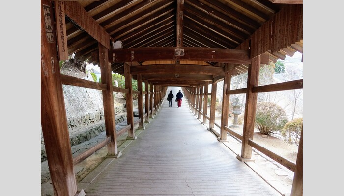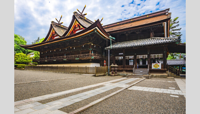 桃太郎(鬼退治)伝説の原型となったとされる吉備津彦命(きびつひこのみこと)と温羅(うら)にまつわる伝説が残っています。鬼退治の矢を置いたと伝わる矢置岩、鬼の首を埋めたと言われる御竈殿(おかまでん)など、伝説の舞台を体感できます。釜が鳴る音によって吉凶を占う「鳴釜神事」は多くの人に親しまれています。1425年に再建された本殿と拝殿は全国で唯一の吉備津造り(比翼入母屋造り・ひよくいりもやづくり)という建築様式を採用し、国宝に指定されています。また、本殿から続く360mの美しい廻廊は一見の価値がある歴史的建造物です。渡殿(わたりでん)、釣殿(つりでん)、祭文殿(さいもんでん)、軒廊(こんろう)、拝殿(はいでん)、神饌(しんせん)の6棟は県重要文化財です。