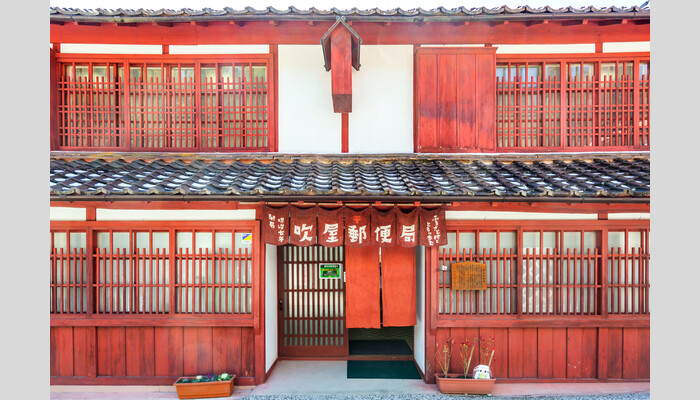 中国山地の山懐に抱かれた吹屋は、ベンガラ生産やその原料であるローハで巨大な富を築いた豪商たちが作り上げた町です。赤銅色の石州瓦とベンガラ色の外観で統一された赤い町並みが印象的です。岡山県「ふるさと村」にも指定されています。