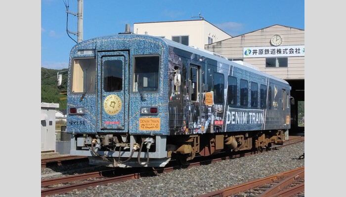 外装は「デニムの聖地」として知られる井原市の多様なデニム素材をイメージした柄でフルラッピングされ、車両内装はデニム生地のカーテン、座席のヘッドカバーを装着し、車内にもデニム感を演出しています。