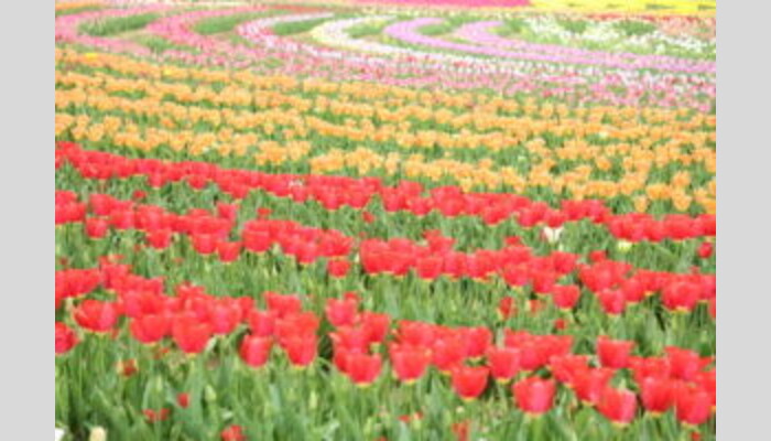 一面に広がる日本最大級!約250品種約75万本のチューリップの丘