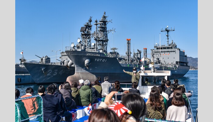 各地発(杣場川駐車場7:20=高松7:30=宇多津)=<瀬戸大橋>=五月荘(明治34年の創業時から旧海軍御用達の店として愛されてきた海軍料亭にて釜めし御膳のご昼食) =呉湾艦船めぐり (海上自衛隊呉基地は「東洋一の軍港」と称された歴史があり、ガイド案内を聞きながら迫力満点の軍港クルージングをお楽しみください)=大和ミュージアム(2026年4月にリニューアルオープン!戦艦大和のレプリカなどを展示する海自歴史博物館)=各地着(高松19:40頃)