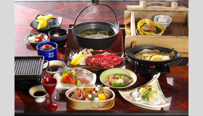 ●こだわりの飛騨牛メイン付きいろり会席のご夕食をご用意しております。