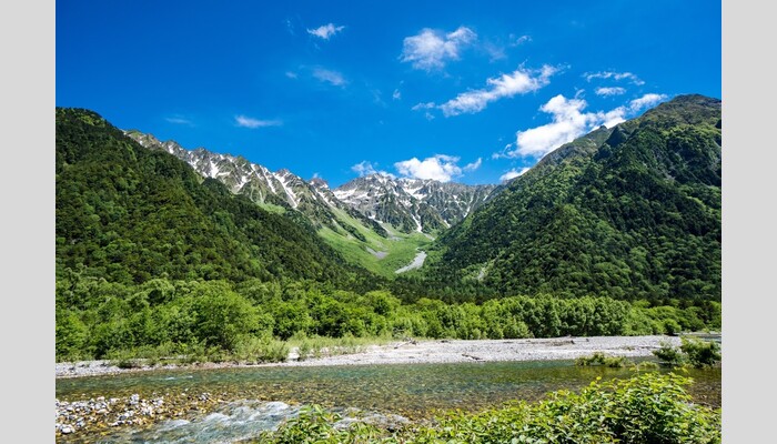 梓川に架かる河童橋や、雄大に広がる穂高連峰、澄み渡った大正池や明神池に映える山々など、どの場所からも息をのむほどの景色が望めます。