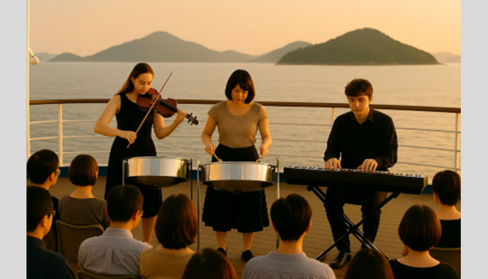 - 高松港旅客船ターミナル 第二浮桟橋集合=高松港16:30(乗船開始)/16:45出港~瀬戸内海クルーズ(船内では生演奏をお楽しみください)~高松港18:45帰着※ワンドリンク・お菓子付※船内ではアルコール・ソフトドリンクの販売もございます。