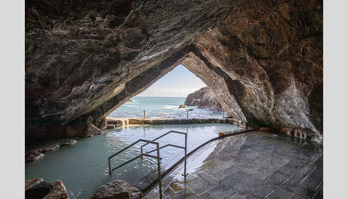 名物は、岩窟の中に自然に湧出した大洞窟温泉「忘帰洞」。