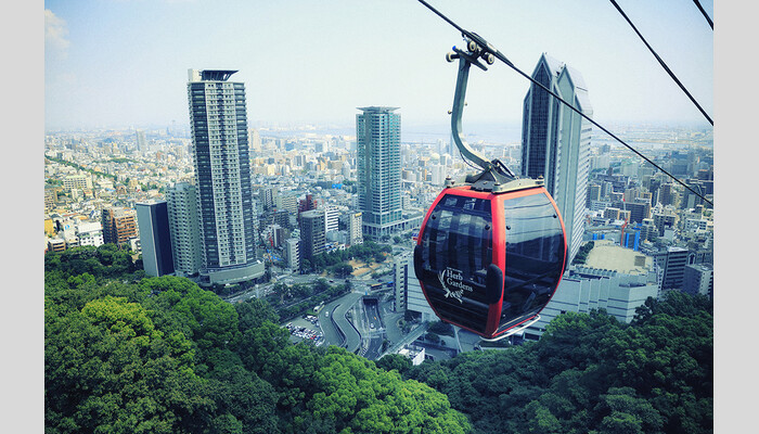 ロープウェイで神戸の景色を眼下に約10分の優雅な空中散歩。ロープウェイの広い窓からは、「布引の滝」や重要文化財「五本松堰堤」などの名所を眺めることができます。