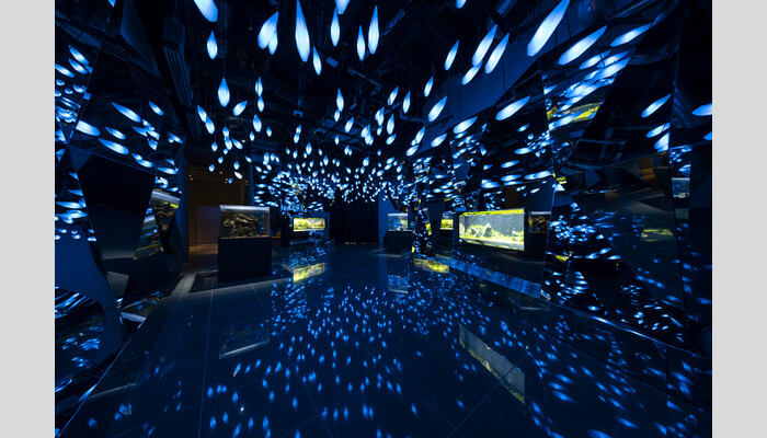 従来の水族館とは違い、生きもの展示と空間演出・デジタルアートが一体となった体験型施設が特徴です。
