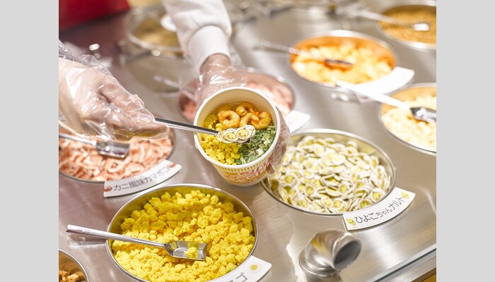 自分でデザインしたカップに、4種類の中からお好みのスープと、12種類の具材の中から4つのトッピングを選べ、味の組み合わせは、全5,460通りです。