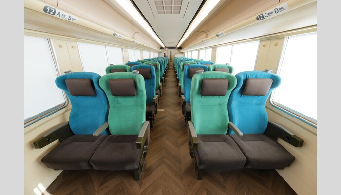 2024年デビューの特急列車で国内初となる「車上型の制御付自然振り子方式」を導入。従来の自然振り子方式と比べて、揺れを抑制し、乗り物酔いしにくい快適な乗り心地を実現しています。全席にコンセントと可動式の枕を設置し、車内Wi-Fiも完備。また、座席間隔は新幹線普通車並みに拡大され、快適性が向上しました。