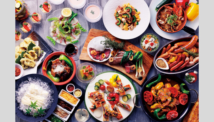 ご昼食は、ホテルオークラ京都の最上階レストランにて、約50種ランチバイキングをご用意しております。