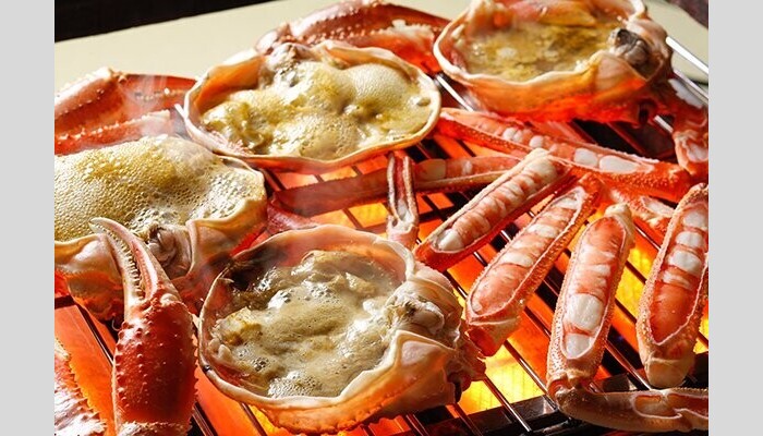 ・お宿自慢の遠赤外線囲炉裏で甲羅焼と香ばしい焼きカニで!