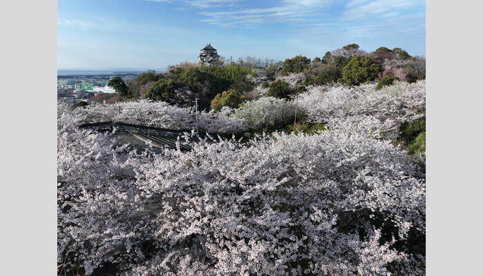 ③妙見山公園 小高い山にお城と桜の絶景