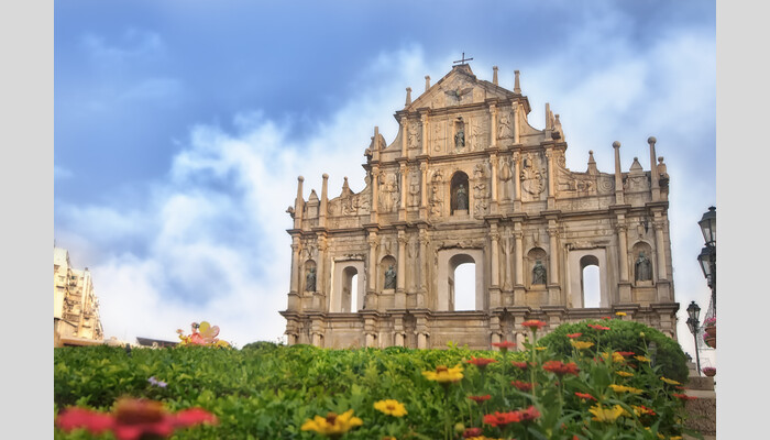 ポルトガル風の教会・広場・石畳と、中国寺院が混在する独特の景観が魅力。