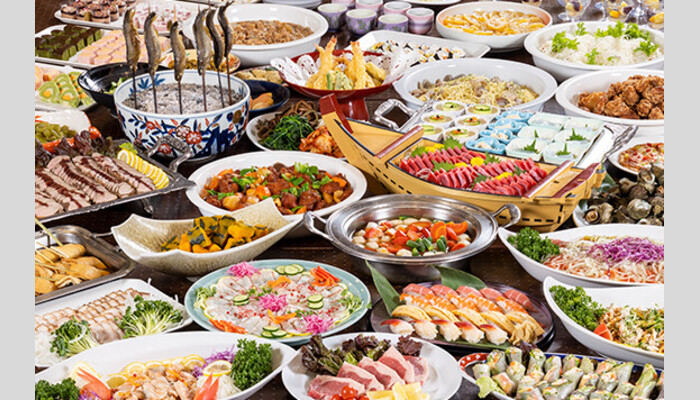・今春リニューアルしたダイニングで約80種類の贅沢ディナーバイキング!アルコール飲み放題!