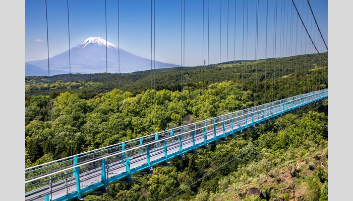 富士山や駿河湾、伊豆の山々を一望できる全長400mを誇る日本最長の人道専用吊り橋です。