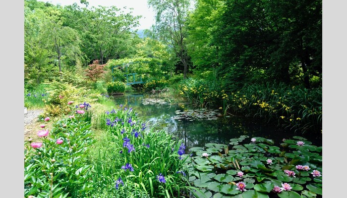 宝飾とガラス工芸の巨匠ルネ・ラリックの作品を約1,500点所蔵する美の殿堂です。6月の「睡蓮の池庭」は、ラリックが敬愛した画家クロード・モネの「睡蓮」を彷彿とさせる、まさに絵画のような絶景です。池には白やピンクの可憐な睡蓮が咲き誇り、周囲の鮮やかな新緑が水面に映り込みます。アール・ヌーヴォーの装飾美と箱根の豊かな自然が溶け合う、この時期だけの幻想的な光景を楽しめます。