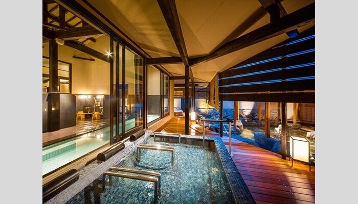 ・昼神温泉の山々を望む展望大浴場と多彩な浴槽を備えた庭園露天風呂