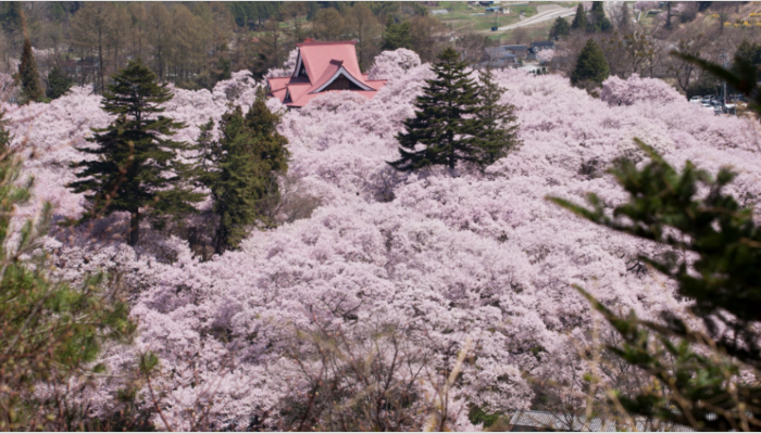 小振りでピンクの強い可憐な花を咲かせる、「天下第一の桜」と言われている高遠コヒガンザクラ。雪を抱いた中央アルプスや南アルプスの山並と青空をバックに城址公園の一面をピンクに染める風景をご覧ください。