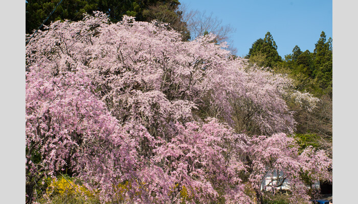 仁王門から大講堂付近を中心に、およそ70本程のしだれ桜が植えられており、満開の時期を迎えると境内がえも言われぬ桜色に彩られ「しだれ桜の寺」としても知られています。