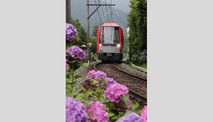 ①初夏の風物詩「箱根登山鉄道あじさい列車」