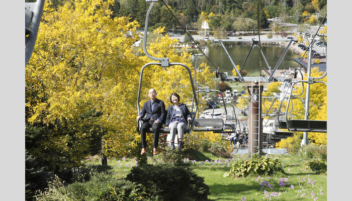 長さ330mの黄金アカシアの丘展望リフト。山頂までを5分で結ぶ2人乗りリフトです。