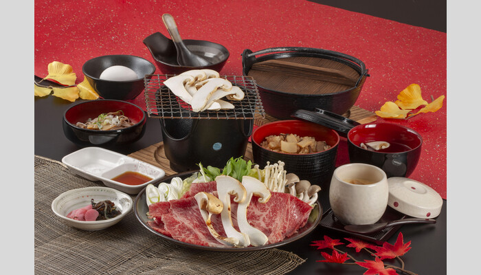 秋の味覚の王様!松茸を満喫!「松茸すきやき鍋と松茸網焼きの松茸づくし」のご昼食