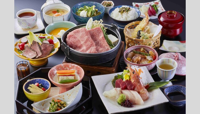 ・現代の名工総料理長監修の但馬牛すき焼き付きのご夕食