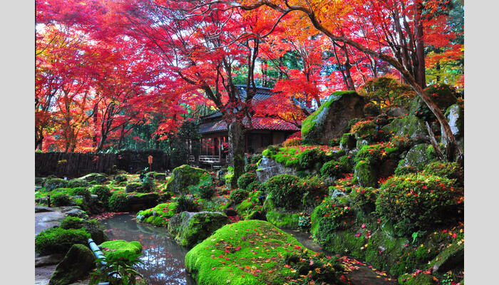 本堂周囲や庭園内の紅葉は「血染めの紅葉」と呼ばれるほどの絶景です!