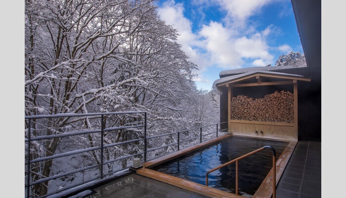 温泉は、武田信玄の隠し湯でもある自家源泉の親湯温泉。弱酸性のさらりとした泉質で、美人の湯としても誉れ高く、お肌のつるつる感を楽しんで頂けます。渓流の力強い音、眼前の大木に迫られるようなダイナミックさ。目で、耳で、肌で、自然美を愛でながらのご入浴をお楽しみ下さい。