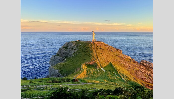 =大瀬崎灯台(断崖絶壁の上に建つ白い灯台)