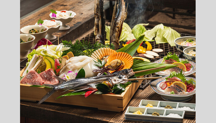 =各ホテル着。五島牛付きの和会席 五島グルメ会席のご提供。