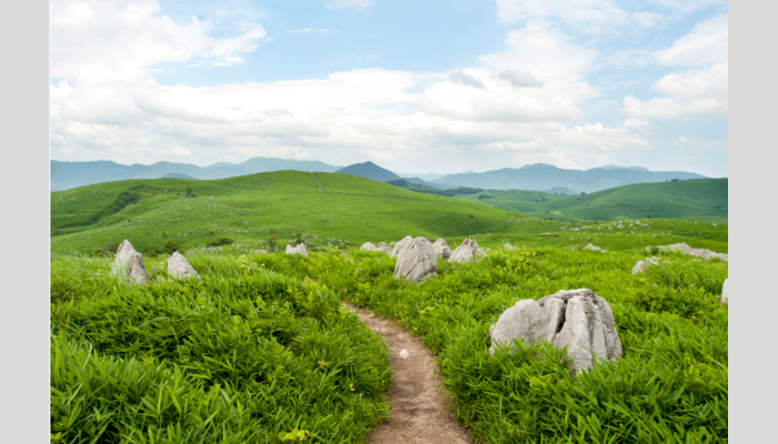 - 各地発(鴨島5:45=徳島6:30=松茂専用駐車場7:00)=<瀬戸大橋>=秋吉台(日本最大級のカルスト台地)=角島展望台(角島大橋のビュースポット)=<角島大橋>