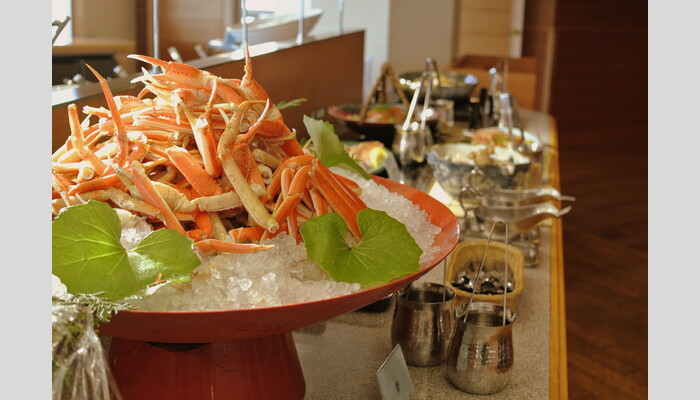 ・カニ足・和牛ステーキを含むハーフバイキングのご夕食 お寿司や天ぷらはライブキッチンで!