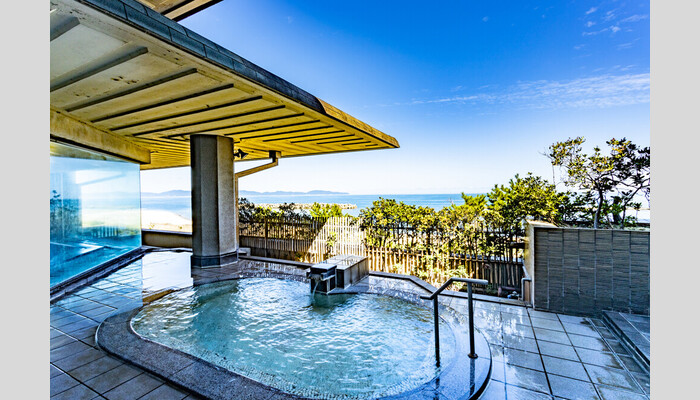 露天風呂からは日本海を遥か遠くまで海が見渡すことができ、大海の湯に浸かるような感覚でホカホカ、ツルツルの美肌の湯をご堪能くださいませ。