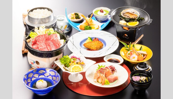 「あわび」「地元ブランド牛・長州和牛」「小ふぐ唐揚げ」「鯛」付きと、山口の味覚が詰まったご夕食をお楽しみください♪