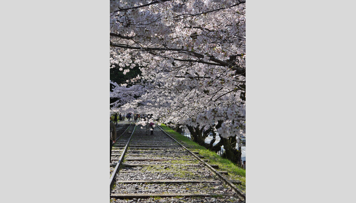 蹴上インクラインは全長582mの世界最長の傾斜鉄道跡で、琵琶湖疏水の船運ルートにある高低差約36mの急斜面で船を運行するために敷設されました。線路沿いはソメイヨシノやヤマザクラなど約90本の桜並木なので、歩きながらお花見がお楽しみいただけます!