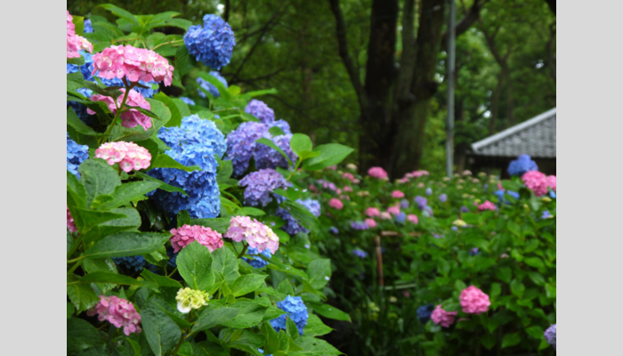 菖蒲の節句発祥の地として知られる藤森神社では、6月に紫陽花苑に植えられた約3500株の様々な種類の紫陽花が咲き広がり、梅雨の時期を鮮やかに彩ります。