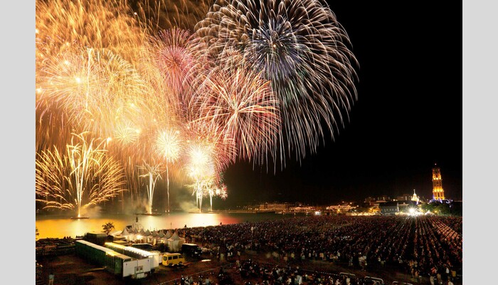 長崎県のハウステンボスで開催される西日本最大級の花火大会です。打ち上げ総数は約2万2000発にも上ります。世界最高峰を誇る日本の有名花火師30社による「一尺玉競演会」や、クライマックスの5分間で5000発が打ち上がる「大スターマイン」が最大の見どころで、夜空いっぱいに広がる圧巻の光景を楽しめます。花火を間近で楽しめる安心の特別観覧イス席(パノラマビュー会場)も用意しております。