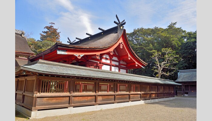 宗像大社辺津宮は、「神宿る島」沖ノ島(沖津宮)・中津宮とともに宗像三女神を祀る中心的な社です。古代、宗像の地は朝鮮半島や大陸への海上交通の要衝であり、宗像三女神は航海安全の守護神として国家的な祭祀を受けました。辺津宮は、三女神のうち市杵島姫神を祀る本土の社であり、古代日本の外交・交易活動の成功を祈願する拠点として重要な役割を担っていました。